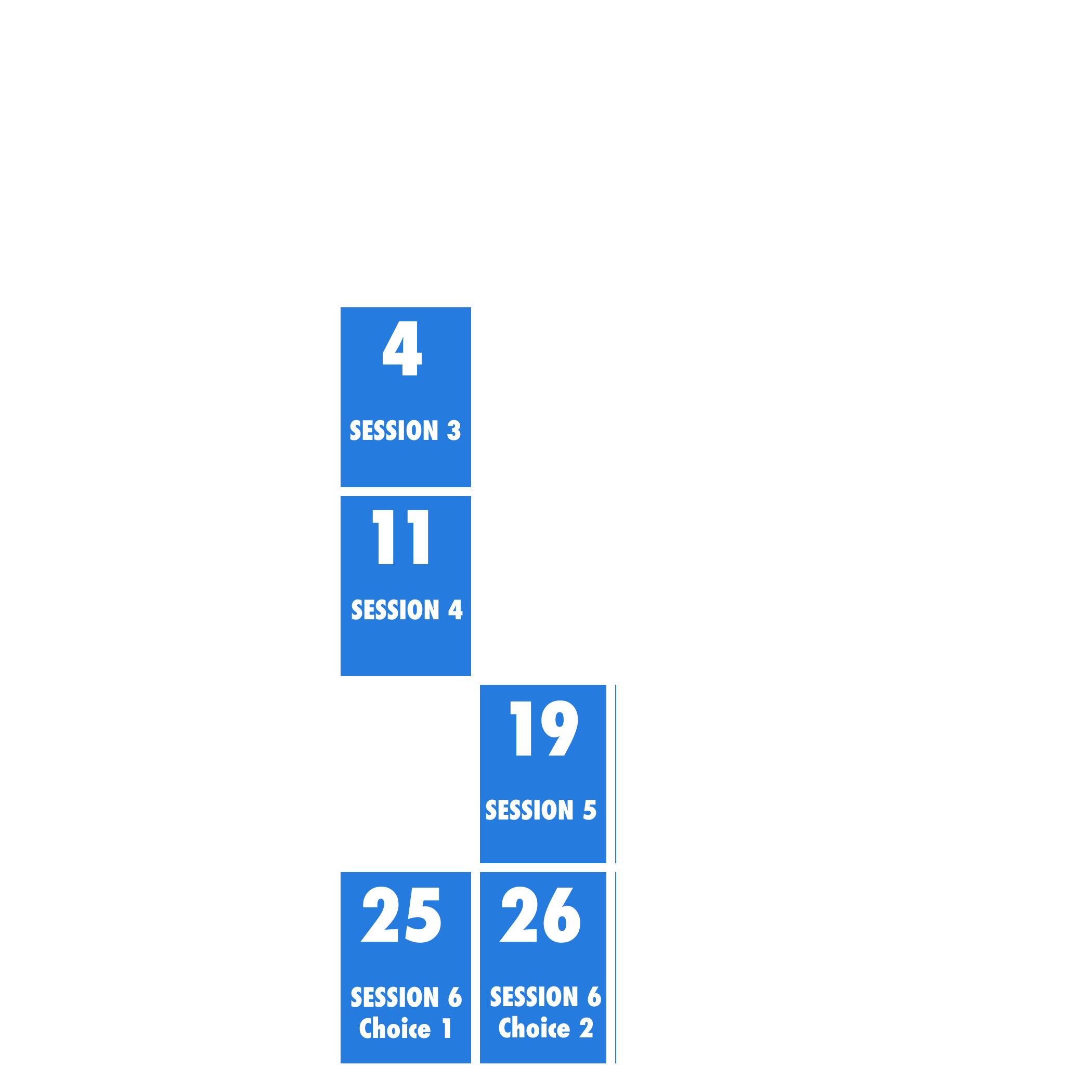 The last week ( 6th week ) of classes is a special 3 hour class. Students will sign up for a time slot on either a Tuesday or Wednesday.