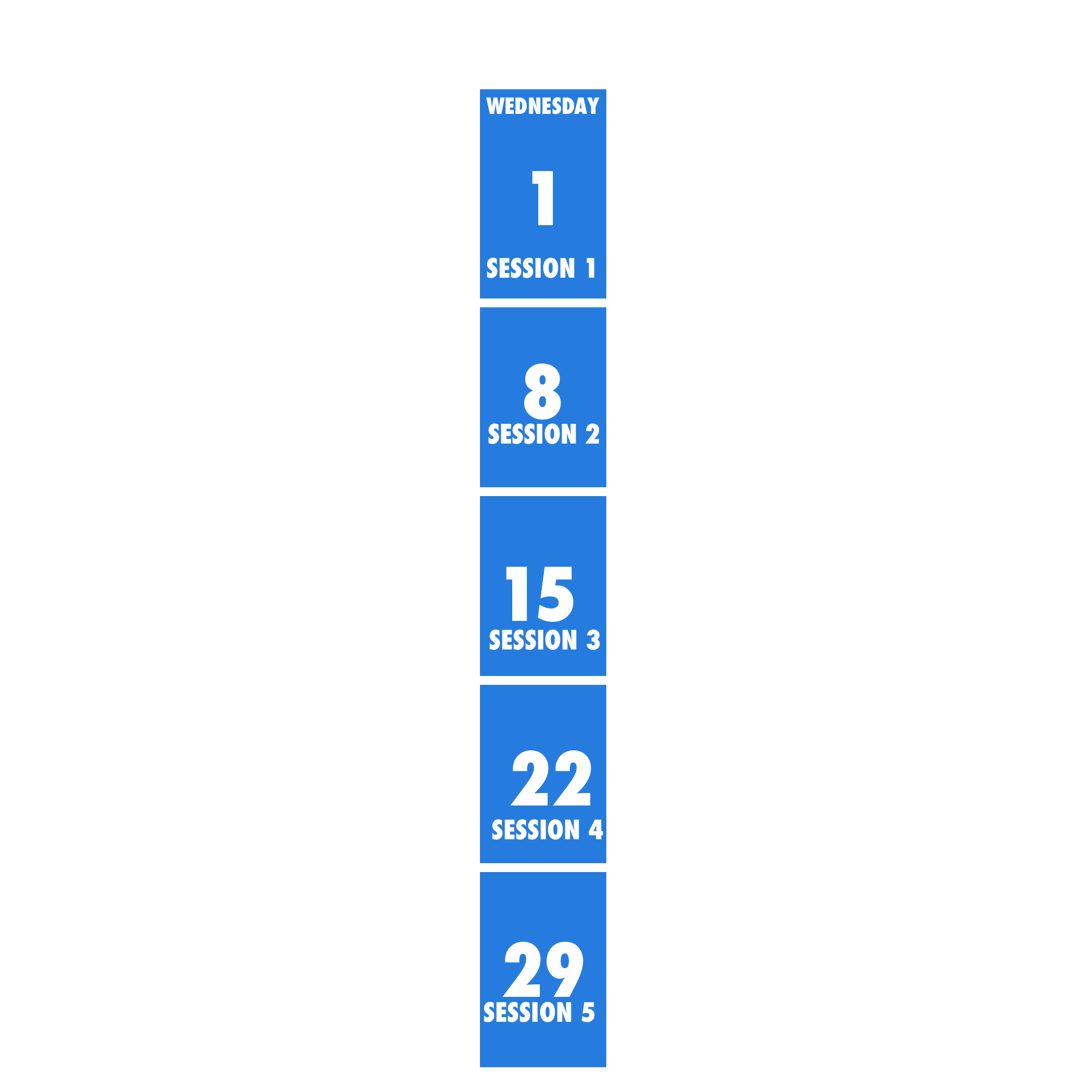 • For weeks 1-5, we run two classes. One that starts at 5:30PM and one that starts at 8PM.